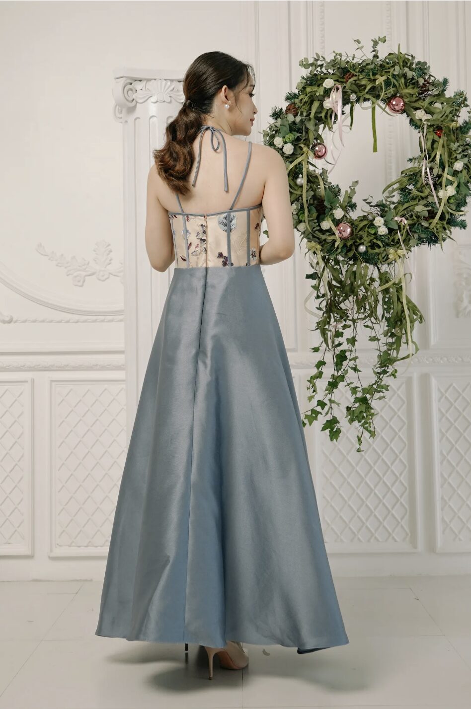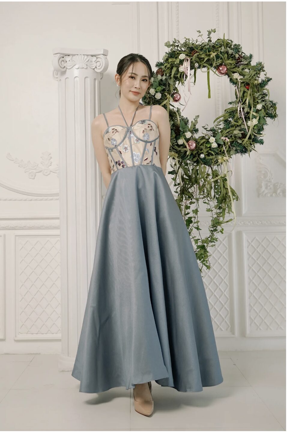 & Free ShippingPoise24 • Blue • Size: M • Dress • Long Dress • Party Guest • Floral • B 88-90 / W 70-72 / H 94-96 • Original Price: Rp2,750,000 • Deposit Rp300,000